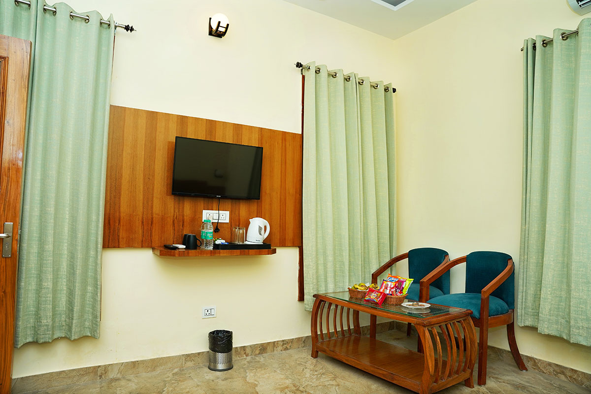 At the resort, each room has a balcony. The rooms are equipped with air conditioning and a flat-screen TV, and some rooms at Vasant Corbett Resort have a city view.